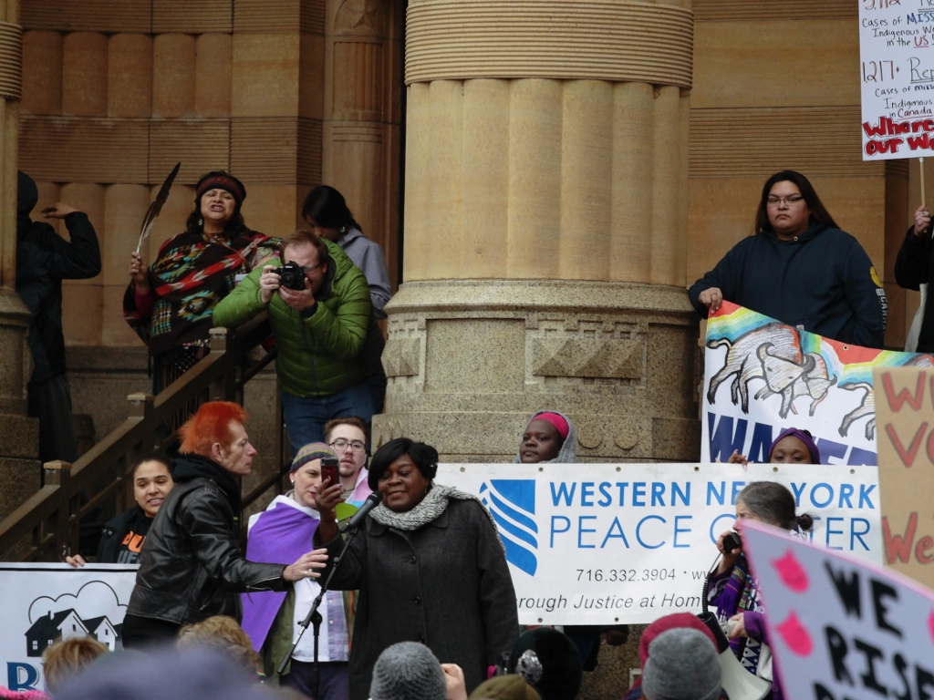 With a police escort, we were able to march in the streets of downtown Buffalo. We had started at the steps of City Hall.