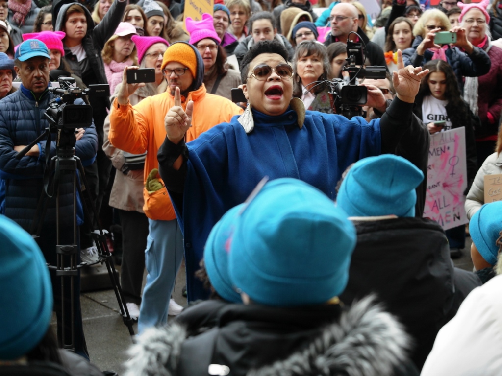 His observation was accurate. Many women did participate in the march. They were outside, wearing costumes and carrying signs that said that their voices were worthy of being heard.