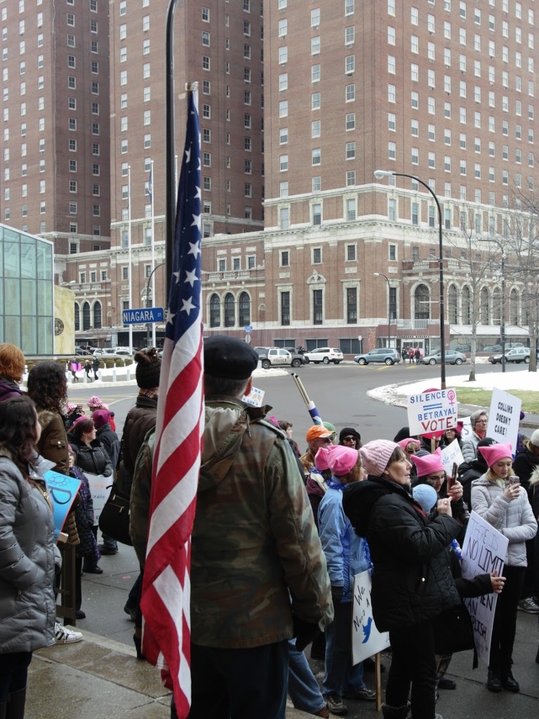 These speakers, who talked to us, both before and after the march, included New York’s deputy governor Kathy Hochul, Buffalo’s Mayor Byron Brown, Congressman Brian Higgins, and Nathan McMurray. He had brought his wife and two sons to the march. He said that one of his sons told him, “Dad, there are a lot of women here.”