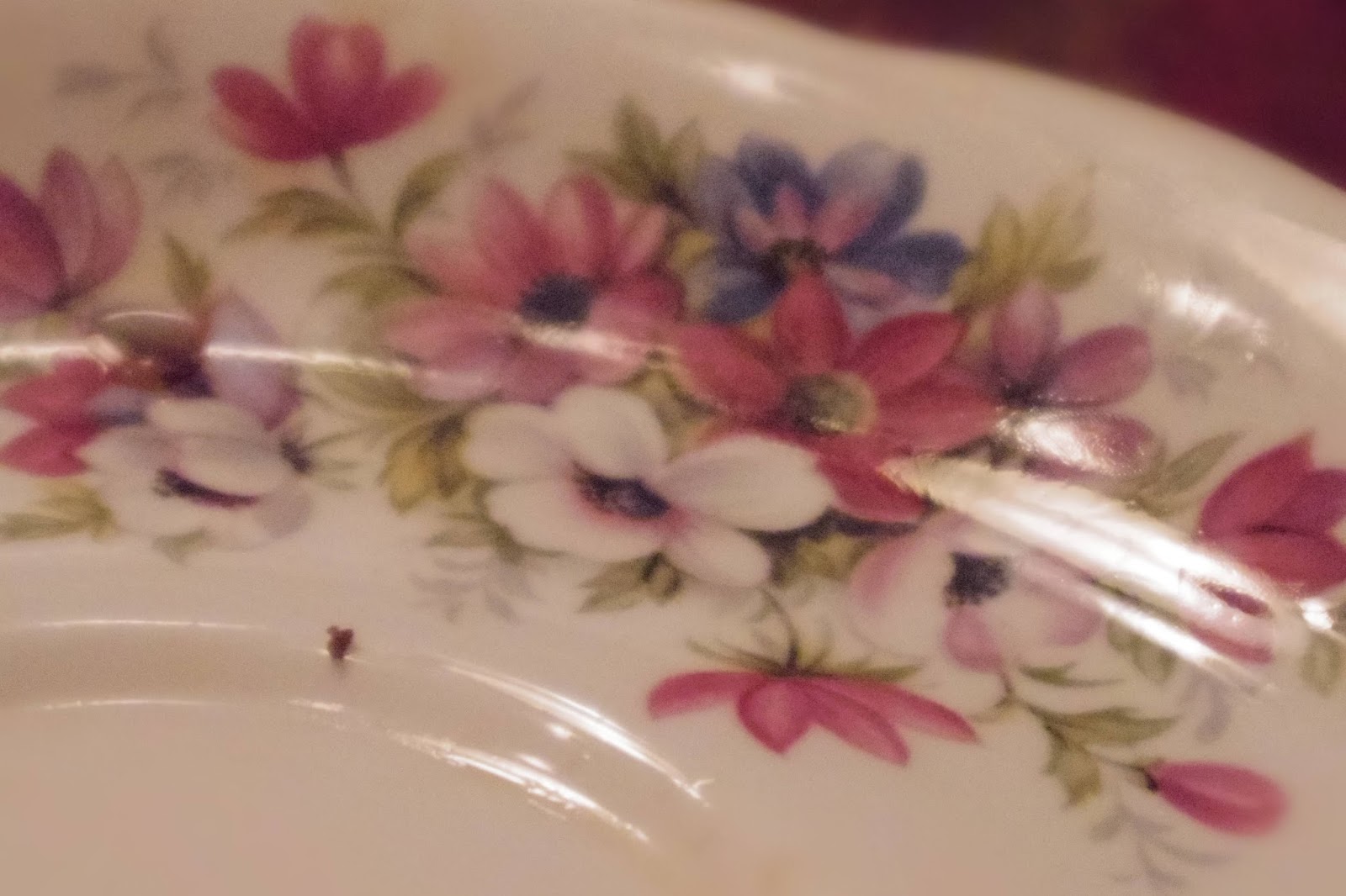 | Close-up things require considerably less zoom. Therefore, I switched to the standard zoom lens for this photograph of the pattern on the bone china saucer. |