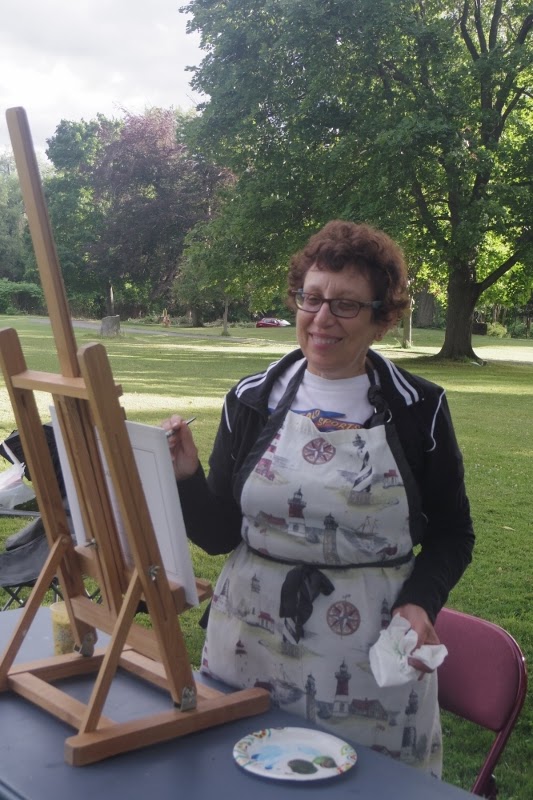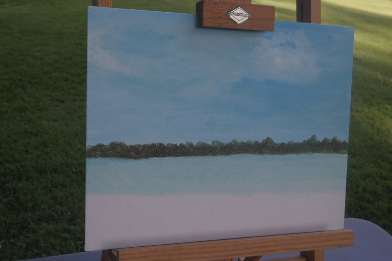 I feel fortunate to live near the Niagara River. In fact, because I live on an island, I am surrounded by the river. No matter which direction I go, eventually, I will reach the river. On Friday, I headed south to Beaver Island State Park for a plein air painting class, organized by George Smith of the Grand Island Historical Society. Plein air means painting outside. The sky was gray and forboding. Was painting outdoors really the best idea?