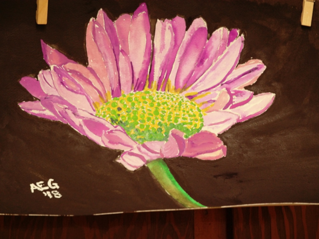 After I finished painting the flowers, I dried the painting and then proceeded to paint the flower pot, the table, and the background. Once I finished adding a decorative touch to the flowerpot, the painting was complete.