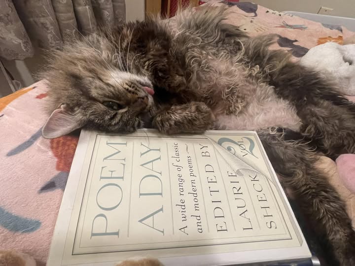I love reading poetry to my cat. She head butts me, purrs, and kisses me while I’m reading. It seems that I have a cat that appreciates literature. She even purrs, head butts, and kisses when I’m reading poetry that I’ve written. So, here are a few poems that I’ve written lately, as part of the 100 day art project because… poetry is painting with words.
