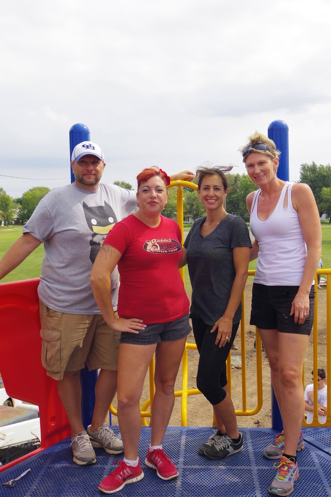 | Teamwork is the key to putting together so many pieces to make one playground. |