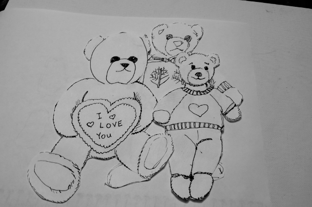I actually drew five different bears. Then I chose three of the bears and I cut them out.