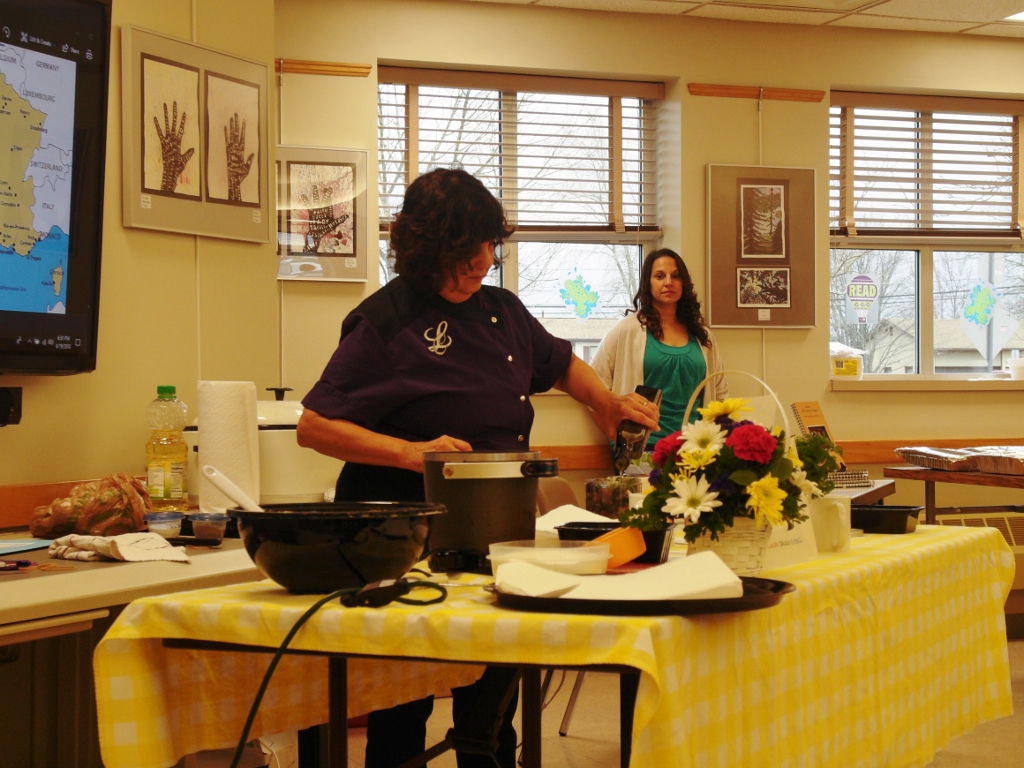 Yesterday Linda Cascio Critelli came to the Grand Island Memorial Library to do a cooking demonstration and to tell stories about her experiences in France, as well as her knowledge of Italian cooking. She was selling a little cookbook, titled Sicilian with a French Accent. It features “deliciously simple cuisine.” She turned the library meeting room into a cooking show and added stories and taste tests! The beauty was in the magic that she brought with her!
