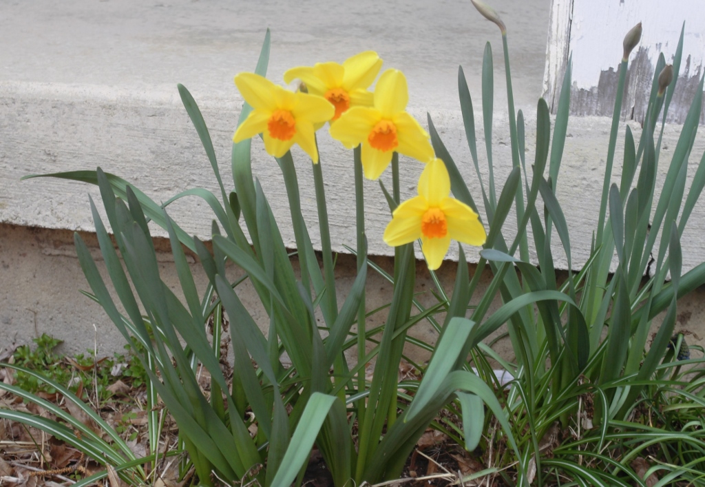 Spring is about rebirth and beauty. It’s about color coming back to a colorless world. When you experience a very long winter, as I do here in Western New York, the gradual unfolding of spring feels like a miracle. It may be a miracle in slow motion, but it is a miracle. Today was a warm, cloudy day, and there were daffodils galore. Just about everywhere I looked, I saw daffodils. They are wonderful plants. I recommend that you grow them. They are planted in the fall as bulbs. You can plant at anytime in the fall, even into November, just as long as the ground is still soft.