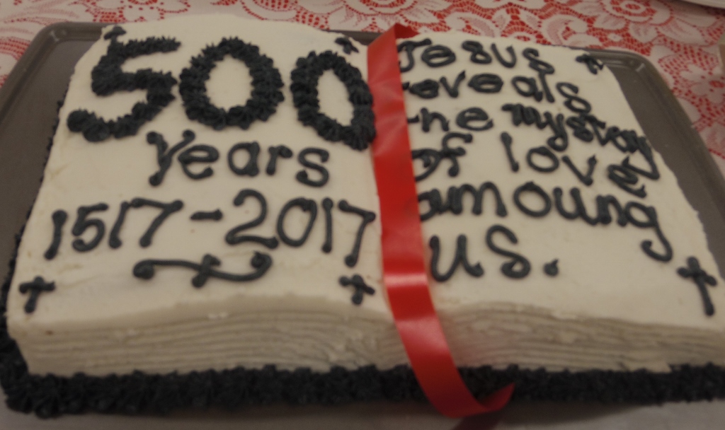 Pastor Bjerke-Ulliman read these words: As the commemoration in 2017 brings joy and gratitude to expression, so must it allow room for both Lutherans and Catholics to experience the pain over failures and trespasses, guilt and sin in the persons and events that are being remembered. “In the sixteenth century, Catholics and Lutherans frequently not only misunderstood but also exaggerated and caricatured their opponents in order to make them look ridiculous. They repeatedly violated the eighth commandment, which prohibits bearing false witness against one’s neighbor.”