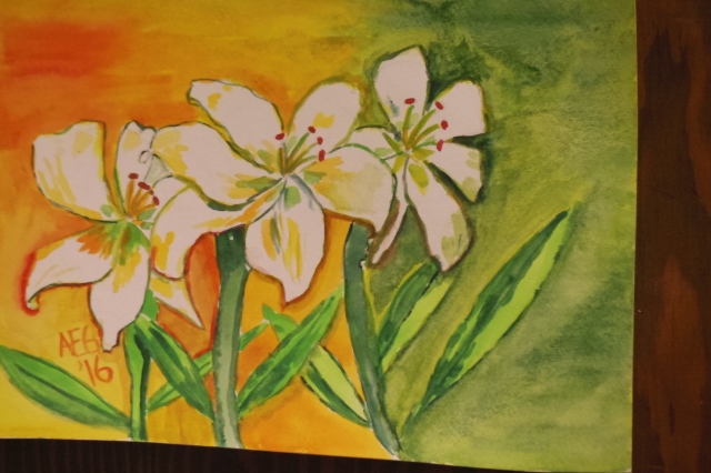 The goal that I had in doing this painting was to paint white flowers and give them a bit of shadow so that they would look somewhat real. |