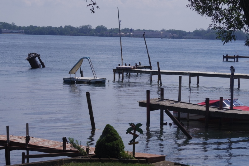 | There are many docks along the river. I once had a gardening customer who lived in a house across the street from the river. She had a boathouse and a dock on the other side of the street. She was not in the best of health so she had a home health aide who helped out around the house and monitored the lady’s medication. She took a large number of prescriptions. Anyway, as turned out, despite having lived near the river for many years, my customer never learned how to swim. One day, the home health aide told me that there was a tipped over flower pot at the end of the dock. She said, “Do you know how to swim?” “Yes,” I said. She asked me to take care of the flower pot because, like her patient, the home health aide also had never learned how to swim. Both of them were afraid that they would fall in the water. It was a hot day. I was hoping to fall in the water, but it didn’t happen.