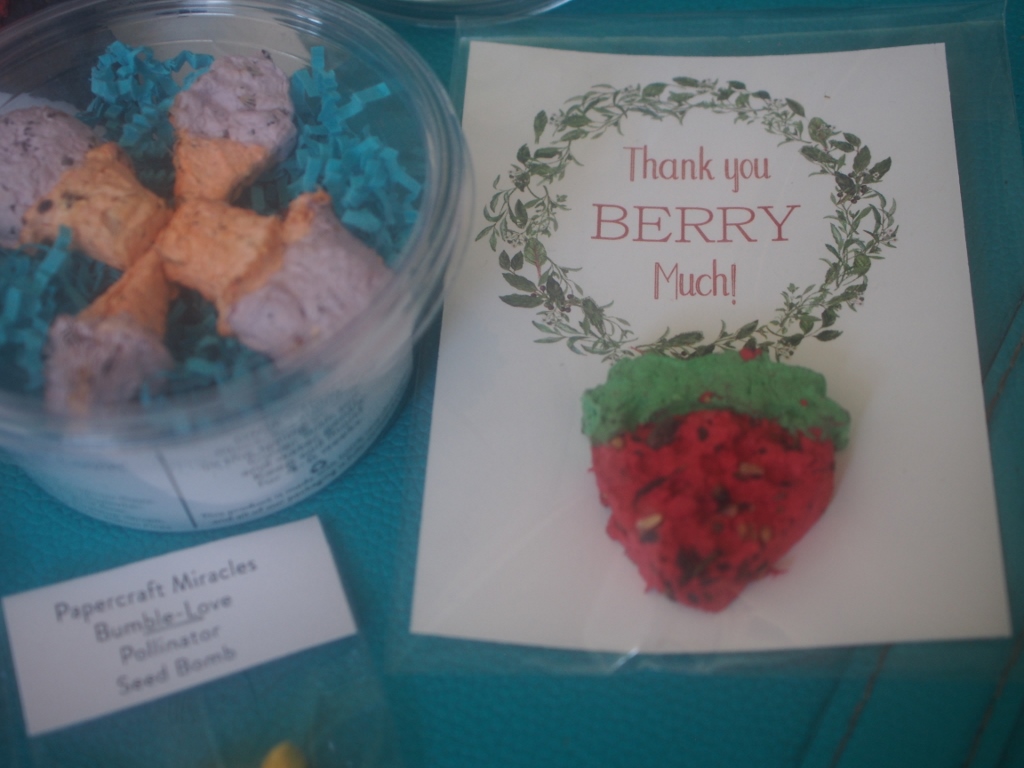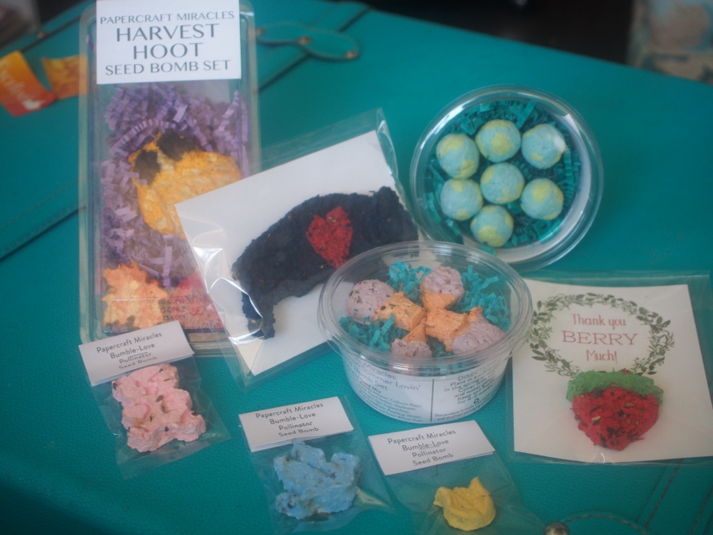 A few weeks ago, I posted an interview with Janna Willoughby-Lohr about the paper flowers that her papermaking business, Papercraft Miracles, has been creating. Today, I am sharing the rest of the interview, which is about the seed bombs that Papercraft Miracles produces. Recently, Papercraft Miracles produced half a million seed bombs for Lowes, which has been distributing them every Thursday as part of their free Garden to Go kits.