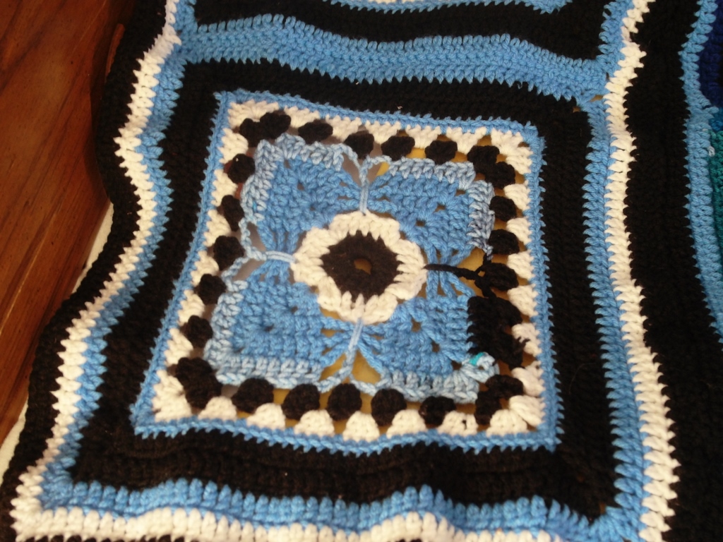 It’s raining again! Could it be time to build an ark? Well, if it is, I’m in the process of making an afghan that will keep everyone warm. Yes, it is that big.