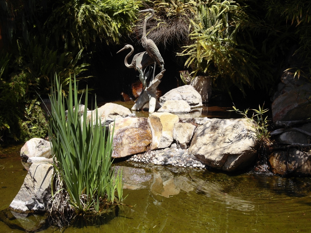 Today, I am sharing pictures from the Japanese garden, which includes plantings, statues, and a fish pond that features koi of various colors.
