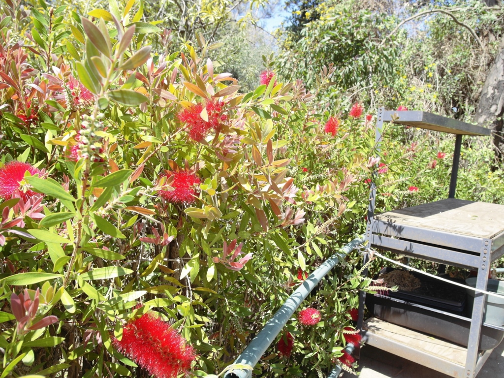 There is a little greenhouse on the premises of the pollinator garden, where those gorgeous plants (mostly perennials, I think) are propagated.