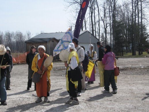 At the edge of the Tonawanda Territory, we were welcomed to the Seneca Nation by Chief Hill and by several clan chiefs. Chief Hill offered a prayer for peace in the Seneca language. This prayer was then translated into English. Jun-san then translated the prayer into Japanese for the benefit of the Japanese members of our group. After we had been welcomed, we walked to the Long House, where we had another welcome. I learned that there are two entrances to the Long House. One is for men and the other is for women. We also were told that the building behind the Long House was where we would have our dinner and where the women would sleep for the night. The men were to sleep in the Long House, which is a bigger structure. We have more men than women in our group, I found out.