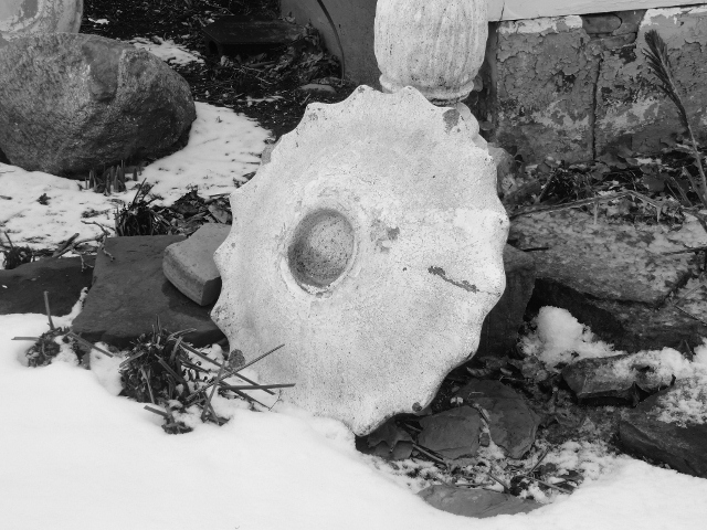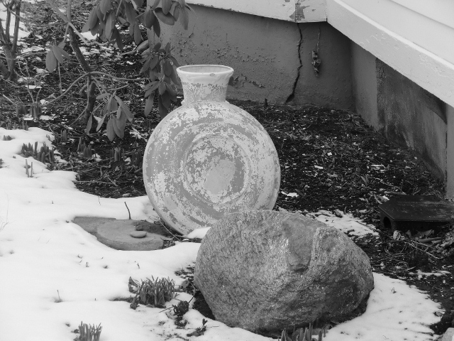 More garden decorations at River Lea. Notice the plants growing through the snow. |