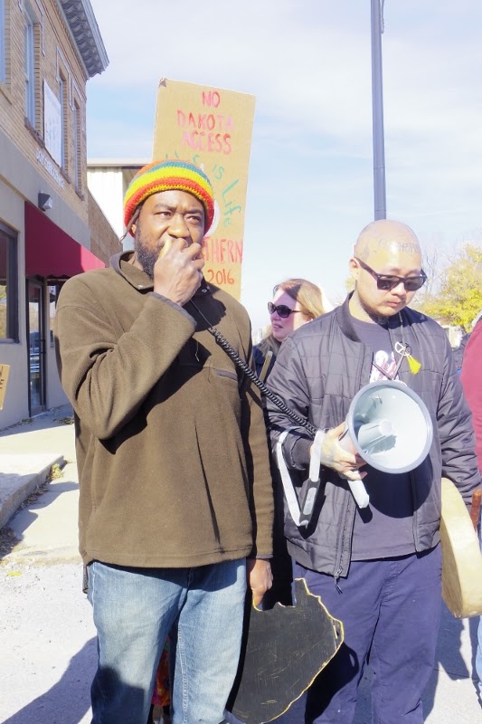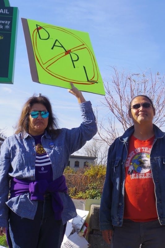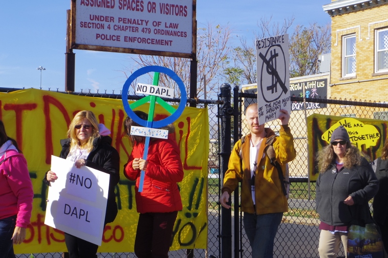 Today, I went to the U.S. Army Corps of Engineers facility in Buffao and joined a group that was supporting the water protectors in North Dakota. The Standing Rock Sioux are trying to stop construction of the Dakota Access Pipeline on their territory. This pipeline, currently under construction, would carry oil from North Dakota to Illinois. It is charged that work on the pipeline has proceeded, even though the company, Dakota Access LLC, a subsidiary of Energy Transfer Partners LP, does not have a permit. The company has hired private security firms. There have also been numerous police agencies to protect the company’s interests. The National Guard has also been activated. The United Nations and Human Rights Watch have announced that they are sending officials to investigate allegations of human rights violations in North Dakota.