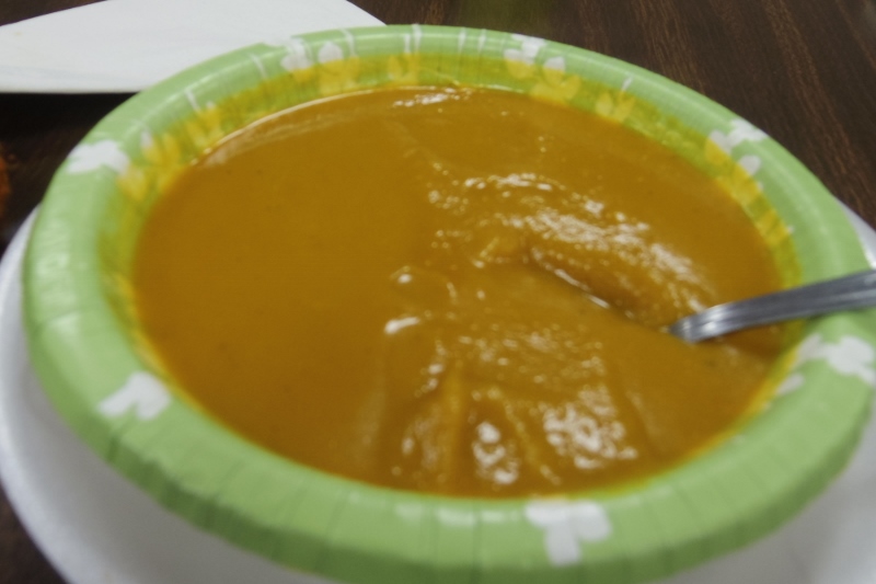 It was thick and filling and scrumptious. And it was orange. I’m not orange phobic anymore. Besides, orange food tends to be highly nutritious. This soup was nutritious and delicious. I also bought, to take home, maple syrup and two types of loose herbal tea: organic hibiscus tea and organic allergy herbal tea.