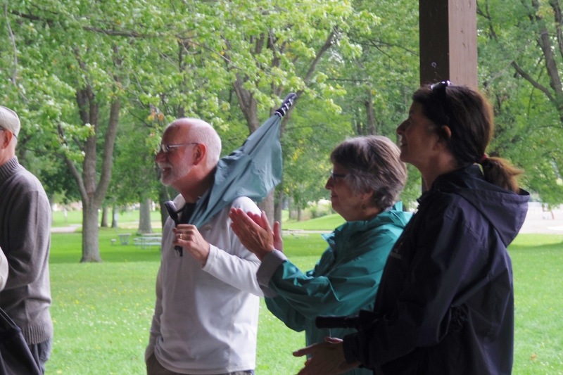 | Father Earle is among the group that is ready to take the walk. He brought an umbrella, as did several others. Fortunately, despite the dark clouds to the west, it did not rain. |