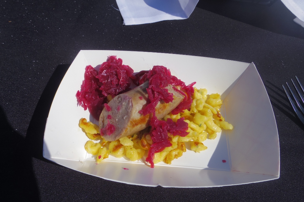 | This was from 773 North, a new restaurant that is set to open in November at the location vacated by the Peppermill. It features bratwurst, red cabbage, and spaetzle. |