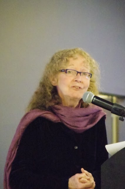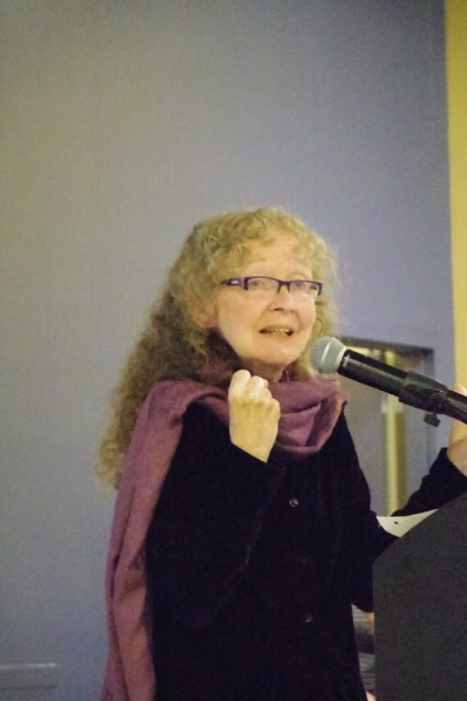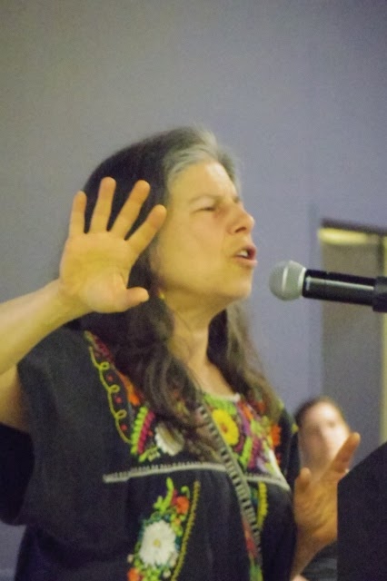 Vicki Ross, the executive director of the Western New York Peace Center, introduced Kathy Kelly. |