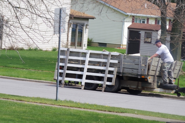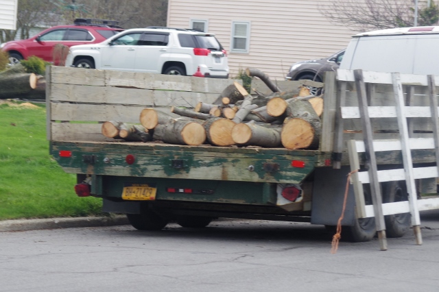 I walked back home and saw that, across the street, a tree was being cut down. |