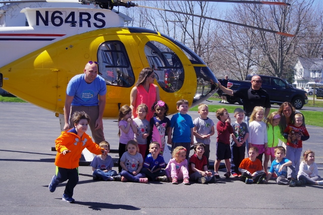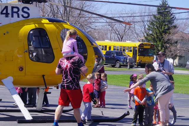 The helicopter was visiting a pre-school. It was very adventurous and exciting for the children, as well as for the adults. |