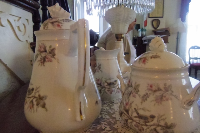 This is a little tea set that’s on display in the hutch in the living room of River Lea. |