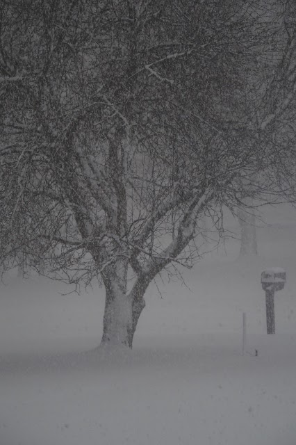 | On Thursday afternoon, lake effect snow came down hard. It was something to watch. I took pictures of snowfall from safely inside the house. |