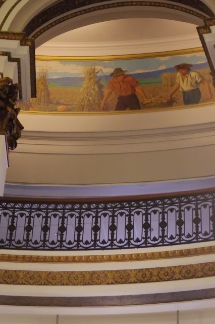 | After church, Maria and I walked through downtown Cleveland. We stopped at a market for lunch and for ingredients for dinner. This market is located in a building that used to be a bank, the Cleveland Trust Rotunda Building. It is now the home of Heinen’s Grocery Store. |