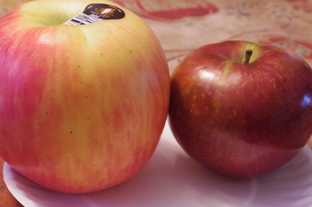 | Apples come in so many varieties and sizes. Both went into the fruit salad. |