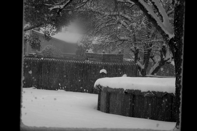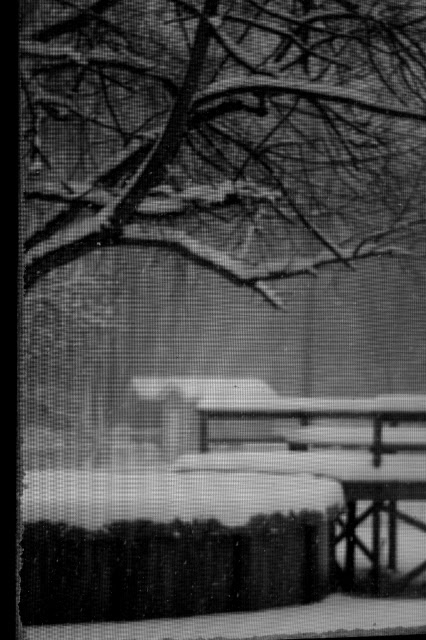 By Friday, I was back in the land of the living. No more continuous loop, illness-induced nightmares. Still not ready to go outdoors, so I took more snow pictures through windows. |