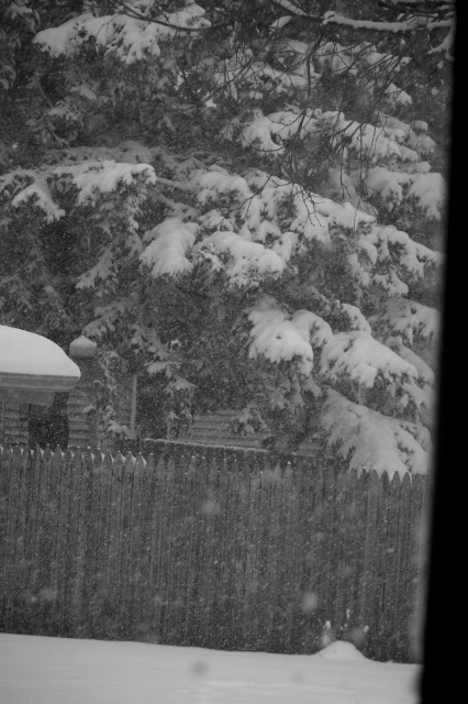 On Thursday afternoon, lake effect snow came down hard. It was something to watch. I took pictures of snowfall from safely inside the house. |