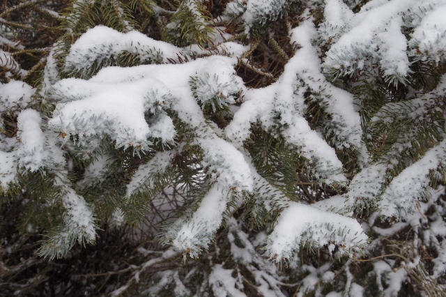 The snow looks like magic on the branches of evergreens. |