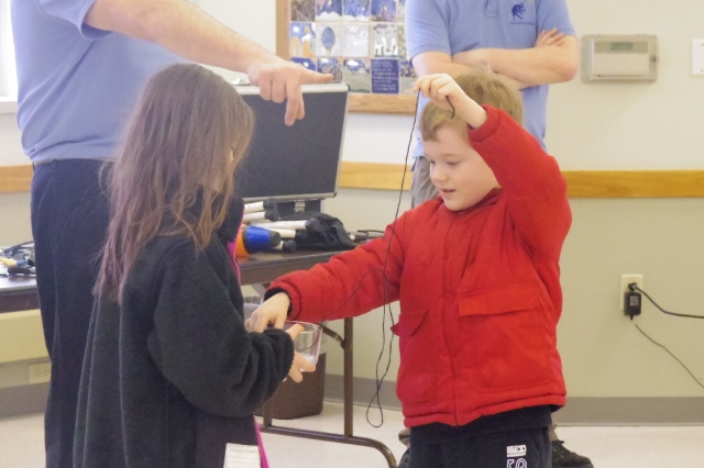 Despite the seemingly nonstop snowfall, there was a big crowd on hand for the meal and the presentation by Father Tom Roman of St. Stephen Roman Catholic Church. |