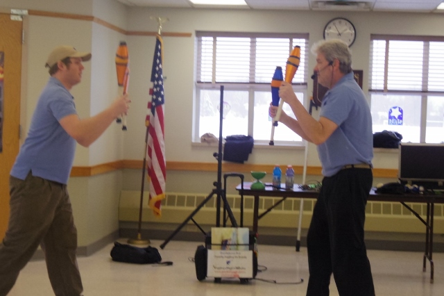 Dave and Kyle Fultz practice their jugging in advance of their performance. |