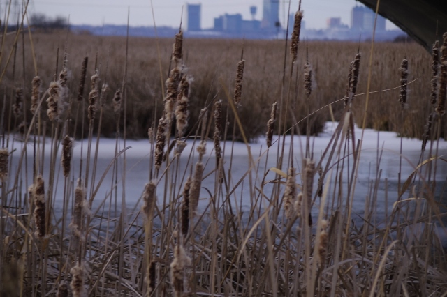 Here are the frozen wetlands. |