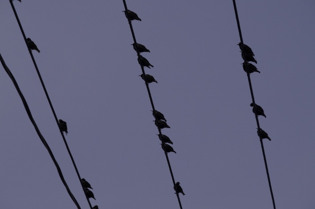 As I headed to the park, I took pictures of the birds on the electrical wires. These birds fly in large groups and adjust to the world of the humans by using electrical wires as perches. |