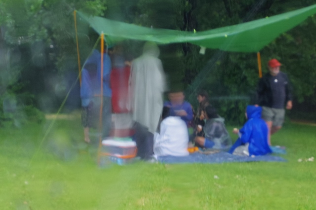 | The storm is starting to clear, and we begin walking again. We had lunch under a tree. A tarp was set up and we either stood or sat on various blankets and rugs to enjoy our food. |