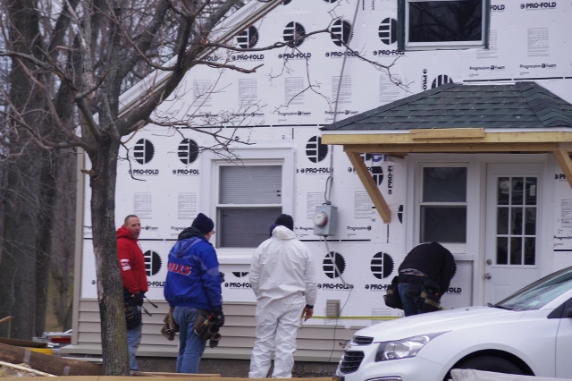 | On Tuesday, I had some errands to run after Zumba. Once I was finished, I started walking home. Even though it was a cold day, people were working outside on a construction project. |