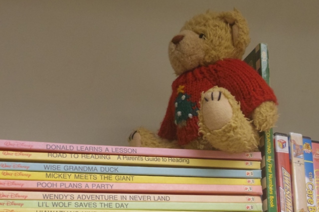 | On Thursday, I was at the library. Here is a display of Girl Scout memorabilia from the 1940s and 1950s. |