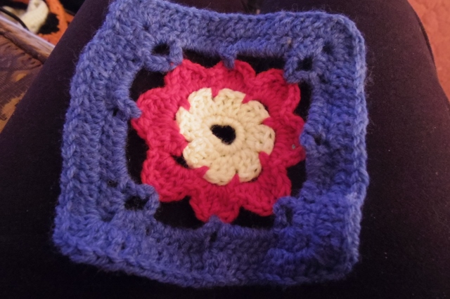 | This is a project that I’ve been working on for a while. I made a bunch of squares for an afghan. This is one. |