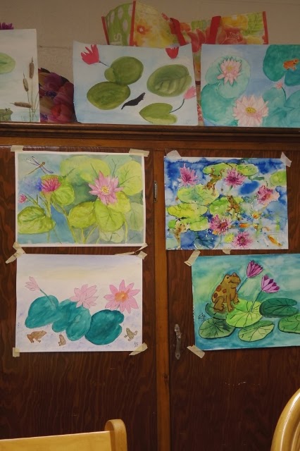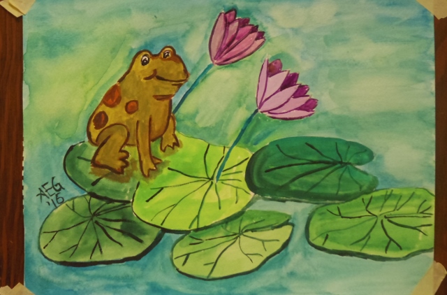 | This is the instructor’s painting, featuring all sorts of jumping frogs. |