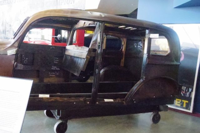 This is the remains of a car that was in the middle of some sort of gun battle.
