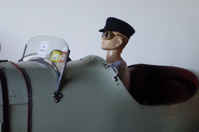 This driver looked more like a pilot, in his cockpit and wearing a pilot’s hat and goggles.