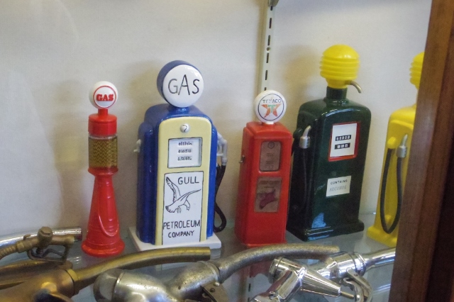 Of course, cars need gasoline. Here are various styles of gas pumps.
