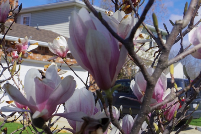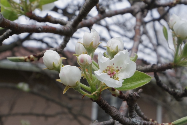 This is the pear tree, covered in flowers and looking like radiant spring.