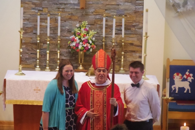 Here is the bishop with Deacon Martha Farone.