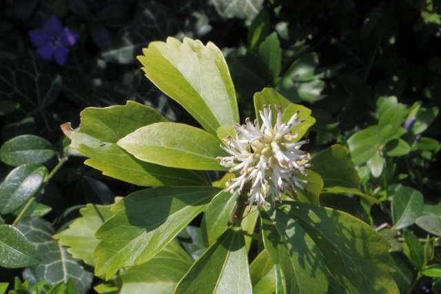 | The pachysandra is a ground cover that grows in all sorts of soil. It will even grow in rocky soil. Here in Grand Island, we have mainly clay soil. The pachysandra has a very delicate flower. |