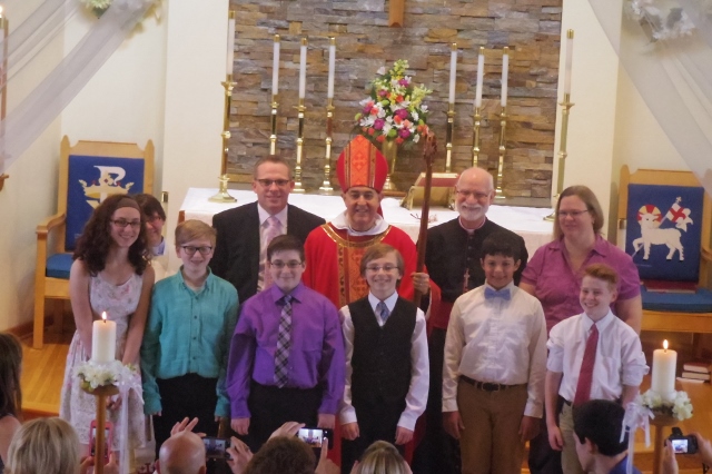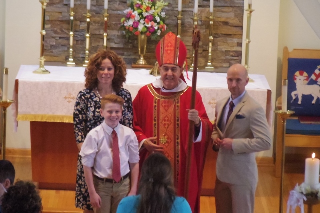 Father Earle poses with Allie and Dave, who are a famous engaged couple at St. Martin’s. |